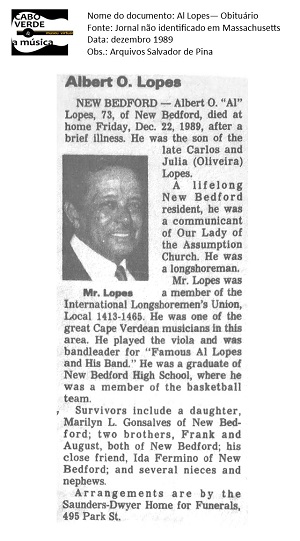 Al Lopes era filho de imigrantes de São Nicolau, segundo Cape Verdean Connection, publicação do Smithsonian Institute, por ocasião do festival alusivo a Cabo Verde, em 1995.
